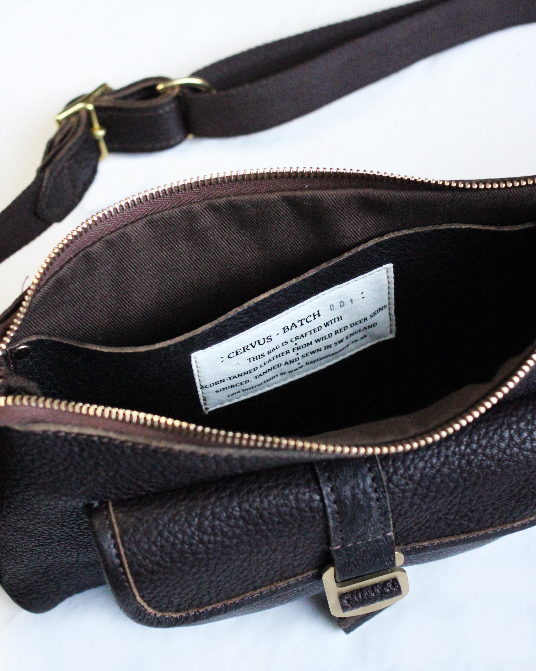Named after the red deer who roam wild in the landscape and whose skins are tanned for our leather, the Cervus Sling Bag is a versatile and comfortable carrier for your essentials!